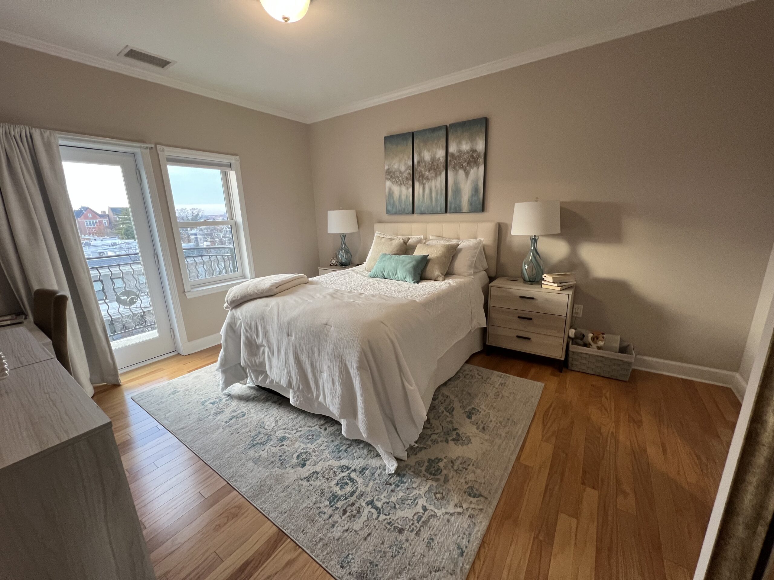 FURNISHINGS COULD STAY. Recently (for the Hill) constructed and beyond gorgeous one bedroom unit in the Lincoln Park Condominium located just north of Lincoln Park and convenient to Eastern Market. Huge amounts of glass-big windows let the light in!, HUGE living/dining space, gourmet kitchen with granite & all almost brand new appliances, lovely wood floors, CAC, washer/dryer, great closet space, concierge desk, GARAGE parking space, and view of both the Washington Monument and the Capitol from not one but TWO private balconies, in addition to the fabulous shared roof deck. Available early March. $2,600 + electric (water, Xfinity Wifi and cable included). SMALL PET CONSIDERED but NO SMOKING, please.